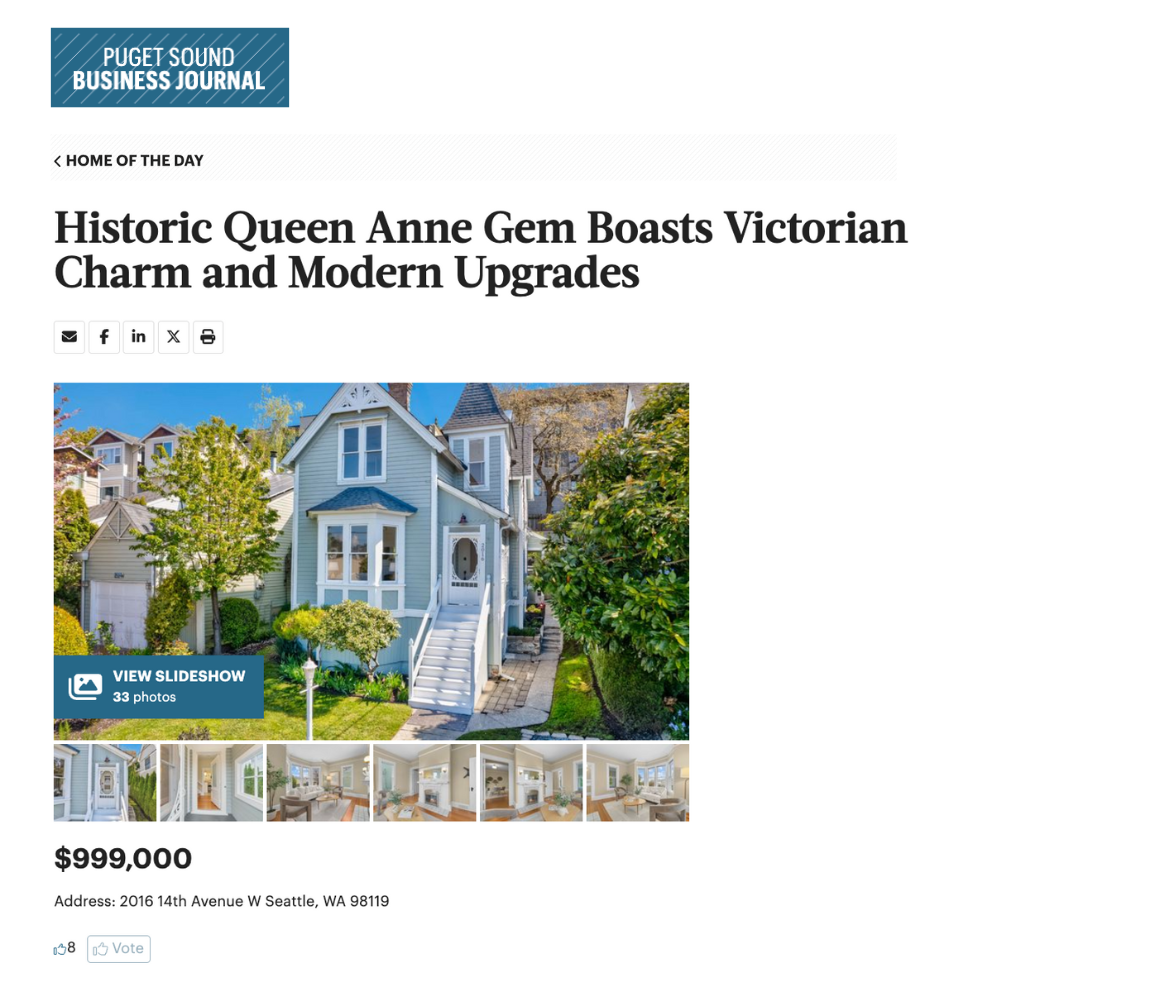 Rising just north of downtown, Queen Anne is one of Seattle’s signature hilltop neighborhoods—known for its sweeping views, historic architecture, and close proximity to the city’s cultural and employment hubs. The west slope looks out toward Magnolia, Elliott Bay, and the Olympic Mountains, offering the kind of quintessential Seattle backdrop that draws many to the area. From this location, it’s a short drive to South Lake Union, downtown, and Ballard, while still feeling comfortably residential and connected to neighborhood amenities.